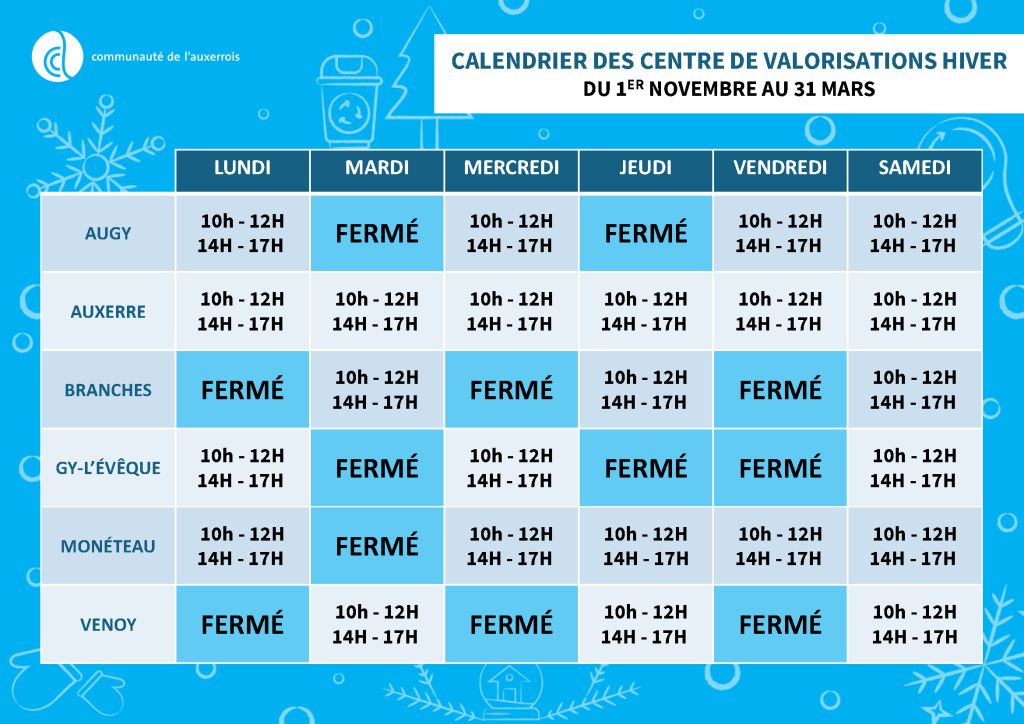 Horaires d'hiver - Commune de Perrigny Horaires d'hiver